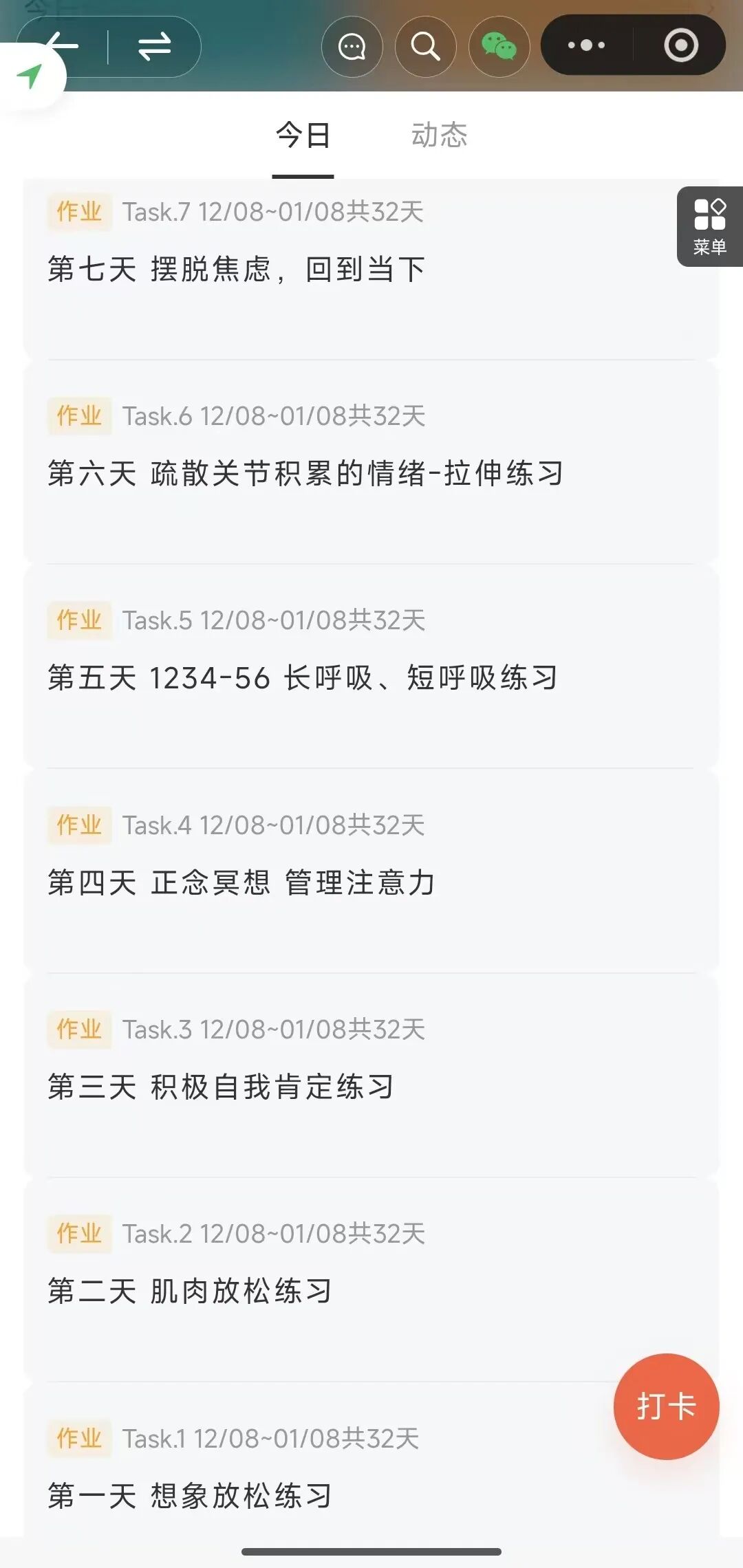 (步骤:扫码进入考研放松圈-打开“任务”-可在学习之余根据需求完成对应的减压放松练习-完成后简单发布感受完成打卡)